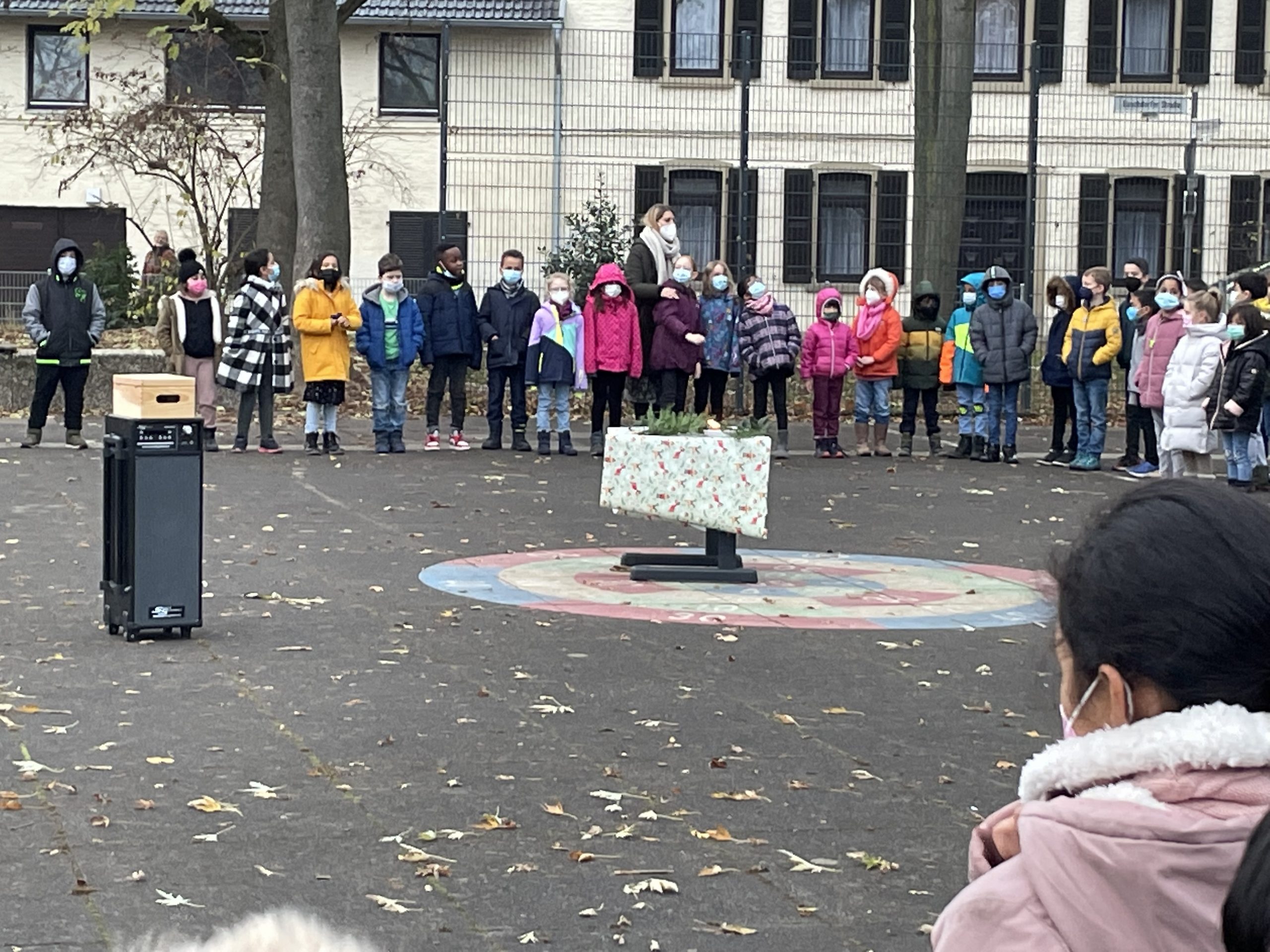 Wie jedes Jahr treffen wir uns auch in dieser Adventszeit jeden Montagmorgen auf dem Schulhof zu einem gemeinsamen Adventssingen und zünden eine Kerze an. In diesem Jahr können die Kinder außerdem die Adventskerzen als Fensterdeko von Schulhof aus bewundern. Bis Weihnachten dekorieren wir jede Woche ein weiteres Fenster und fiebern so gemeinsam auf den heiligen Abend hin.